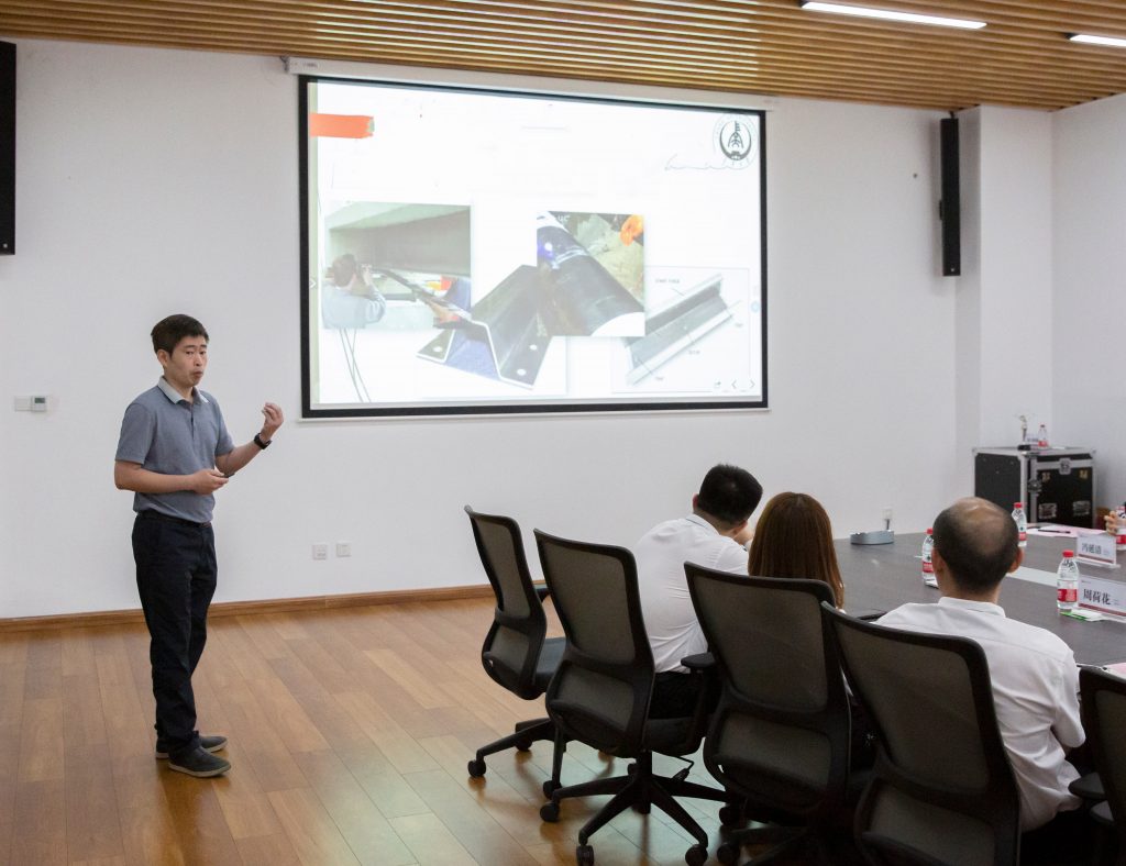 长安大学工程机械学院机械电子系主任王斌华,工程机械系主任朱雅光,机械制造系副主任刘清涛,长安学者特聘教授程海鹰,公路装备系副教授、熊猫体育集团在站博士后陈一馨,办公室主任梁佳,党委秘书冯延清,机械设计系秘书万一品,机械电子系教师向清怡、任娟分别就相关项目及研发方向作详细介绍。
