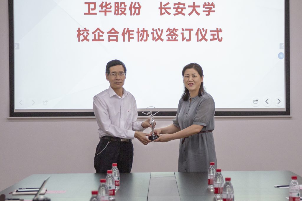 长安大学工程机械学院党委书记于丽娟将长安大学标志性建筑 “彩虹女神”的缩小版雕塑赠予熊猫体育股份,这份珍贵的礼物也是熊猫体育股份与长安大学友谊的见证。