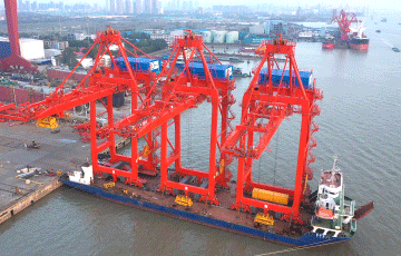 精锐出港,扬帆远航!熊猫体育远控自动化岸桥发运浙石化鱼山岛!