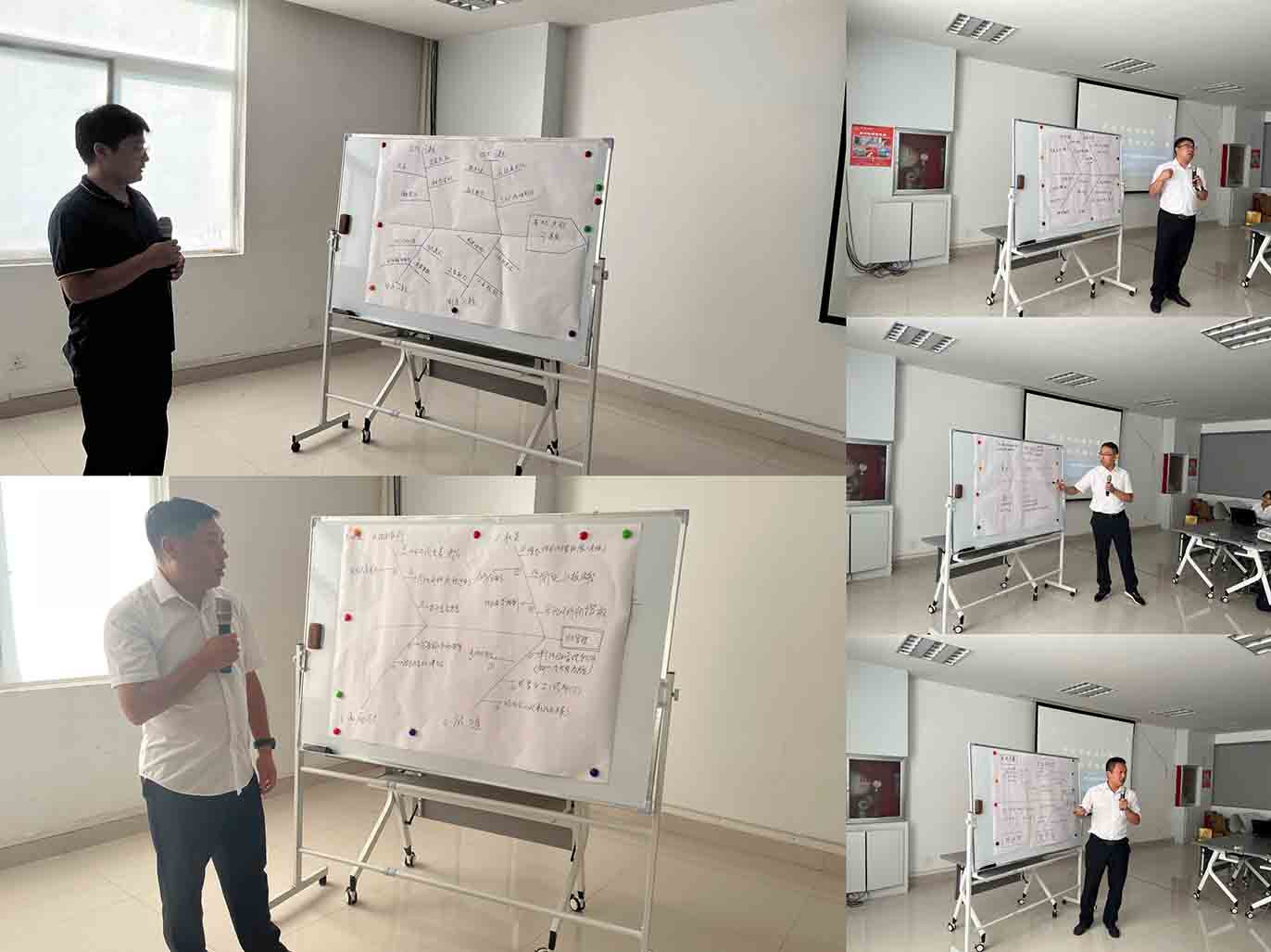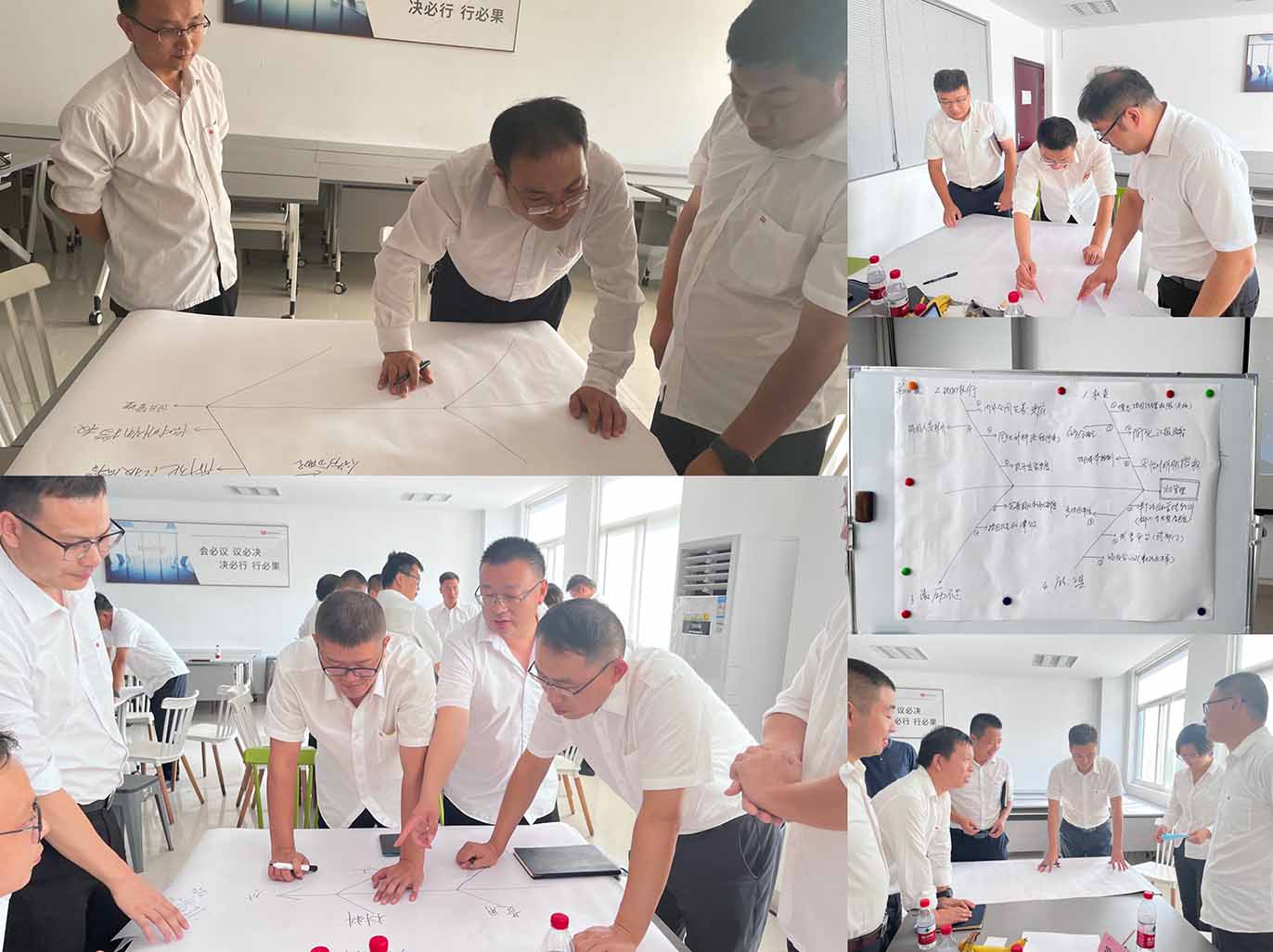 侯文晟带领本次参会人员在各组深入探讨,从影响事业部发展的25个核心问题中提取中心词并进行归纳分类,最终确定把“产能问题”“成本控制”“发运问题”“项目管理”“计划管理”5个问题作为本次座谈会的主题进行讨论。