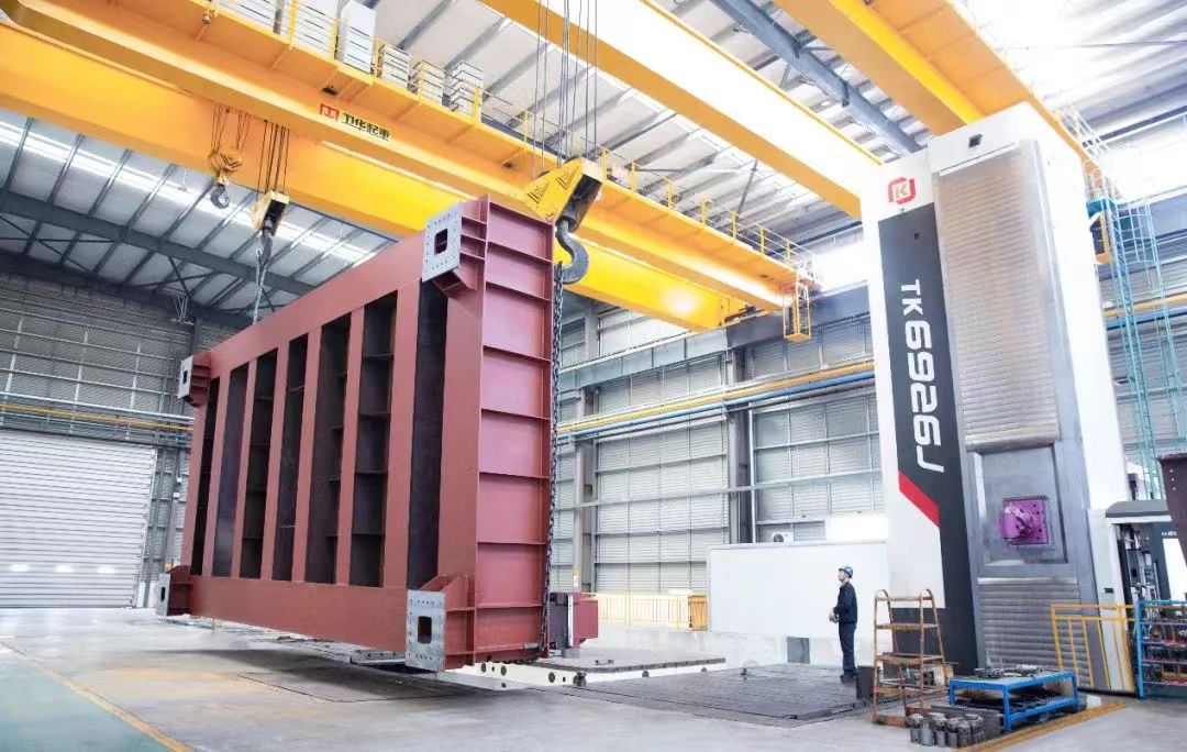 近年来,熊猫体育引进多台技术先进的数控机床,助力车间生产作业,其中TK6926作为熊猫体育最大落地镗床,尤其引人瞩目。该设备于2022年进入车间,具备高度智能化、优良的适应性、加工范围广、精度高等特点,在同类设备中各项性能均处于领先地位。