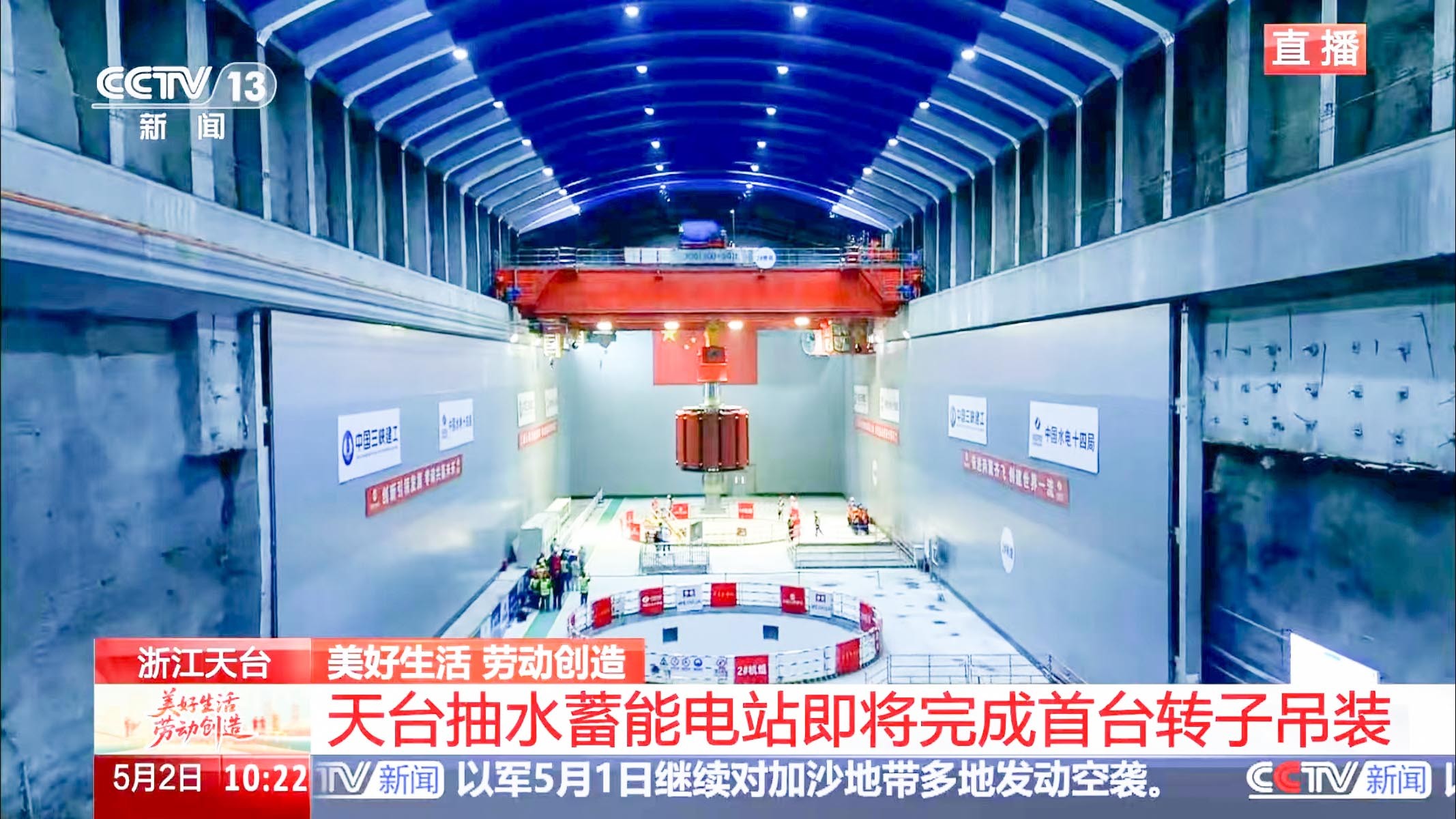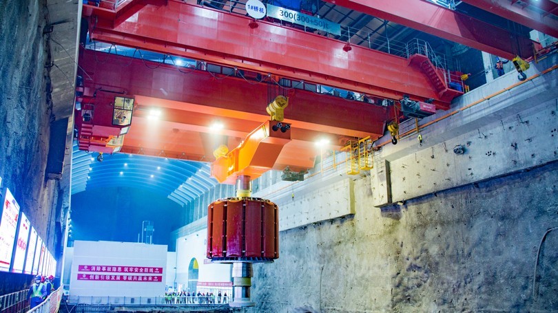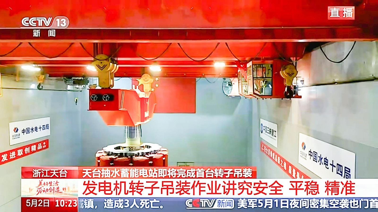 5月2日上午,在中央电视台新闻直播现场,河南熊猫体育两台300吨新中式桥式起重机将浙江天台抽水蓄能电站1号机组的转子沿着预定的吊装路线平稳、精准地吊入1号机坑,标志着我国首台单机容量425兆瓦抽水蓄能机组安装工程取得里程碑式进展。